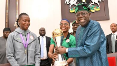 2. From left, President, Nigeria Football Federation (NFF), Ibrahim Gusau; Oyo State Governor, Seyi Makinde; Oyo State Head of Service, Mrs Olubumi Oni and Oyo State Commissioner for Youth and Sports, Wasilat Adegoke, during the Annual General Assembly of NFF, held at Ogunlesi Hal, Ibadan. PHOTO: Oyo Gov’s Media Unit.