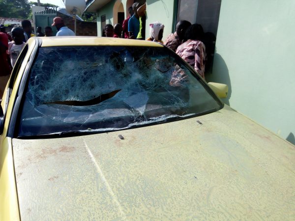“When we heard the sound, we came out and found the woman breaking the windscreen of their vehicle. She then went inside and locked the door. We tried to prevail on her to open the door but she refused.